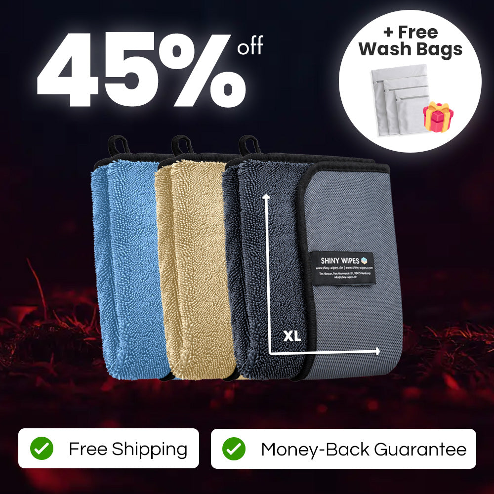 Why choose one when you can have all three? This bundle includes our bestselling Shiny Bath™ Drying Towel in grey, blue, and beige - so you always have a fresh one on hand. Get 45% off compared to buying individually, plus enjoy free shipping, a 30-day money-back guarantee, and a free set of washing bags to keep your towels in perfect condition.